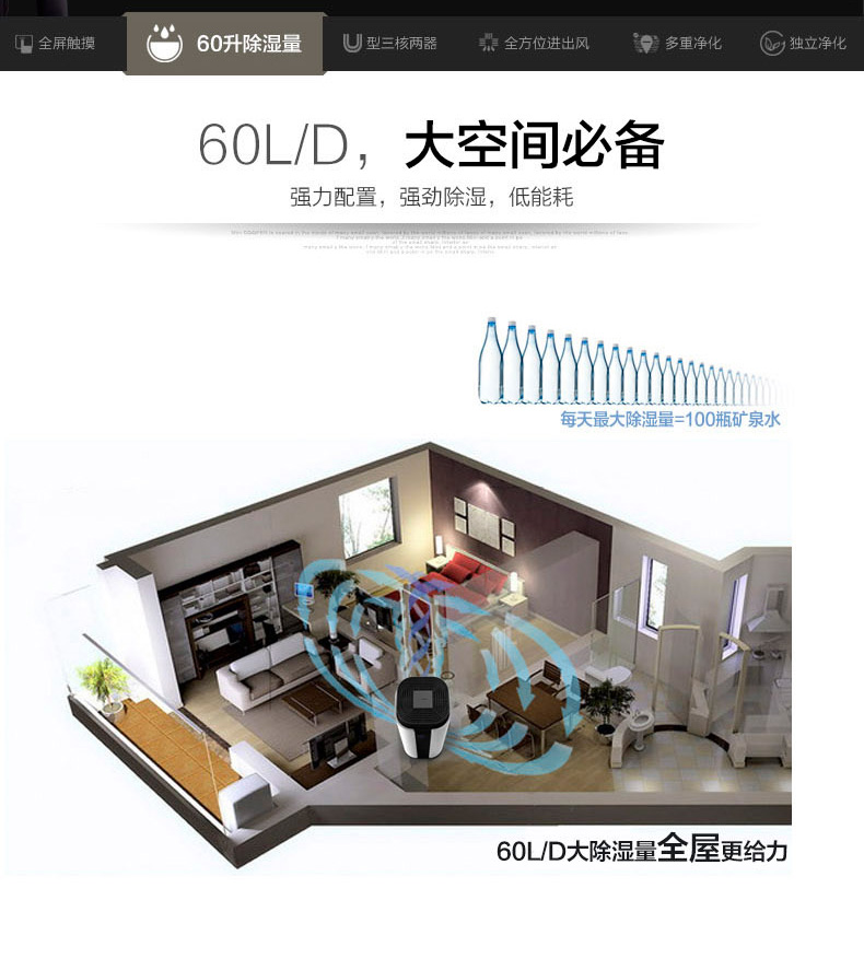 高效壓縮機(jī),壓縮機(jī)三分鐘自動延時保護(hù)。 微電腦精確控制除濕 LED智能控制面板,環(huán)境濕度數(shù)碼顯示 故障代碼提示功能 自動除霜,保持機(jī)器除濕效率 渦輪風(fēng)道系統(tǒng) 定時關(guān)機(jī)功能,省心省電 高低檔風(fēng)速,水滿自動停機(jī)功能